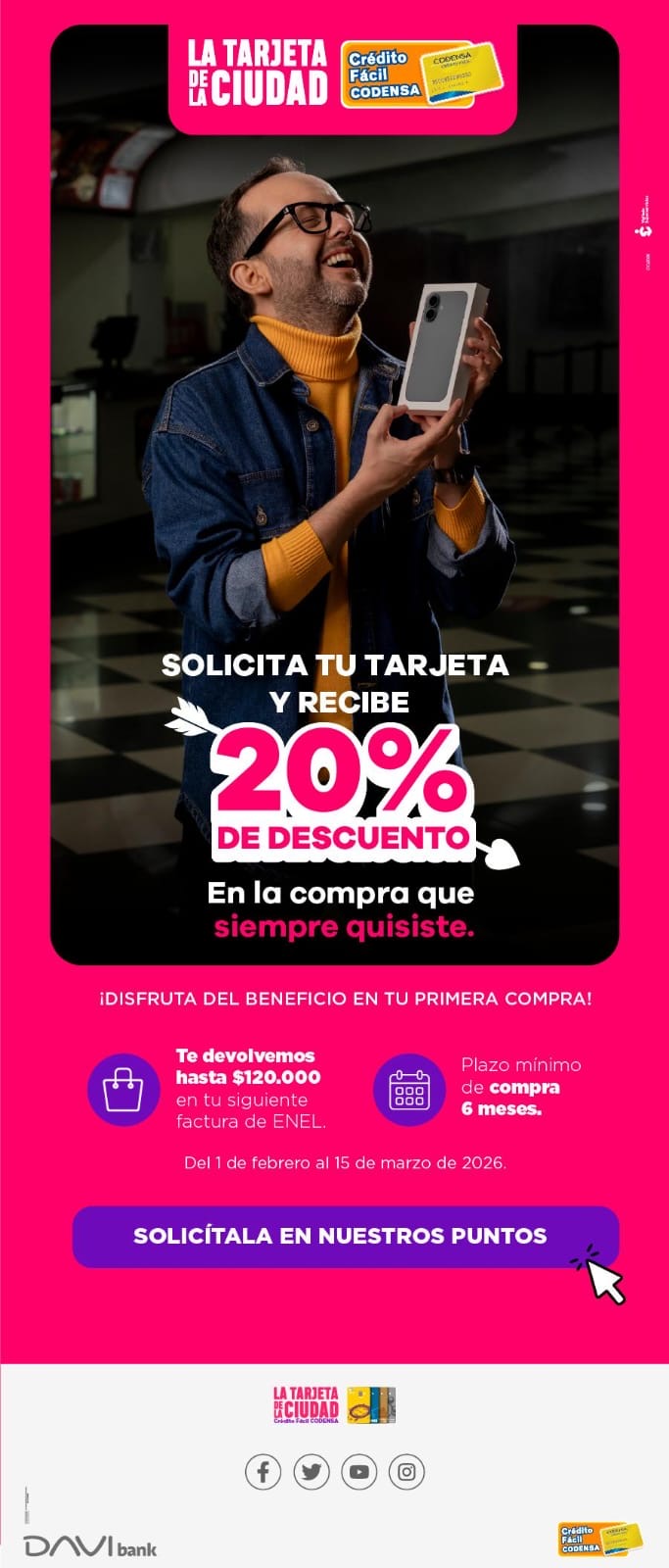 *Las facturas son acumulables en todos nuestros almacenes para completar el monto de CINCUENTA MIL PESOS MCTE ($50.000), exceptuando las facturas de: impuestos, servicios públicos, compra de divisas, certificados financieros o contratos con operadores móviles, las cuales no son válidas para solicitar boletas para participar en los sorteos. Nota: Las facturas de compra de equipos móviles si son válidas. Las boletas son adquiridas solo por compras en establecimientos del centro comercial.